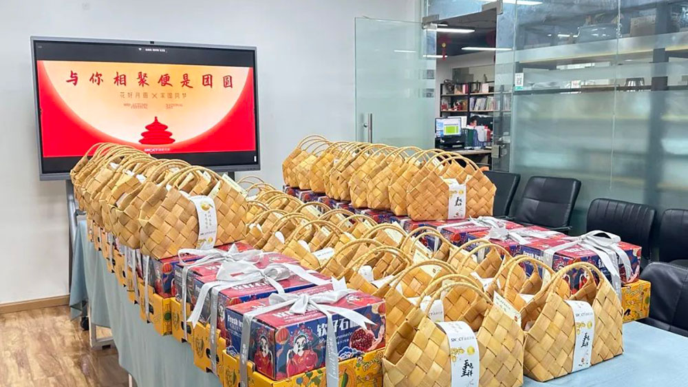 精心選采的月餅、水果等節(jié)日福利,有序地發(fā)放給大家。沉甸甸的禮盒寄托著真切的關(guān)懷,飽含著真情的慰問,福利捧在手里,也暖在心里,每一位員工的臉上都洋溢著喜悅之情。