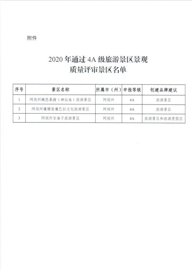 其中九寨溝愛(ài)情海(甘海子)等景區(qū)達(dá)到了申報(bào)創(chuàng)建4A級(jí)旅游景區(qū)的要求,省旅資委同意納入2020年度四川省4A級(jí)旅游景區(qū)創(chuàng)建計(jì)劃。標(biāo)志著九寨溝愛(ài)情海(甘海子)景區(qū)創(chuàng)4A工作進(jìn)入新起點(diǎn),為期半年的提升創(chuàng)建全面啟動(dòng)。