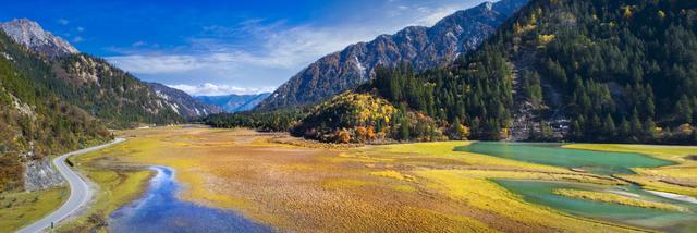 甘海子學(xué)名芳草海,位于松潘縣和九寨溝縣交界處的弓杠嶺,在九寨溝回成都的路旁能夠看到。這里原是一處高山湖泊,后因地質(zhì)變化,出水口擴(kuò)大,所以當(dāng)?shù)匕傩账追Q“干海子”。其實(shí),“干海子”并不干,這里四周遠(yuǎn)山層疊,森林茂密,海子中溪水蜿蜒,芳草萋萋,如天鵝絨地毯鋪滿大地,夏秋季野花點(diǎn)綴其間,牛羊騾馬成群,冬春時(shí)則一片深黃,與周圍的雪山紅葉相映成趣。因此,人們逐漸就把“干海子”叫成了“甘海子”。