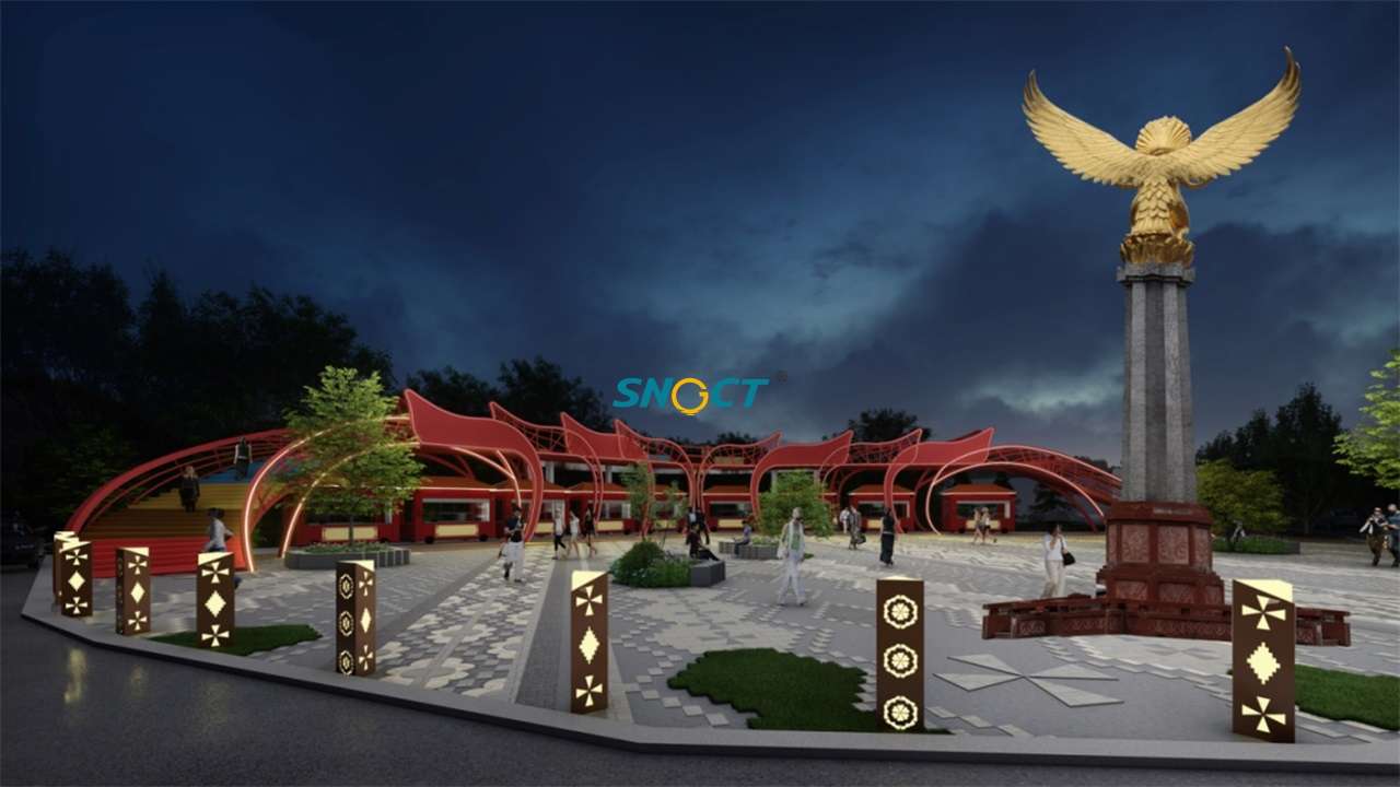 設(shè)計思路:設(shè)計以馬爾康嘉絨驛站“嘉絨圣地、夢之凈土”為指導(dǎo)理念,通過對當(dāng)?shù)乇就廖幕M(jìn)行分析,提取出藍(lán)色、金翅、土地、紋飾幾個元素對應(yīng)的顏色,在不影響銷售區(qū)的采光和結(jié)構(gòu)完整性的基礎(chǔ)上,對觀景平臺進(jìn)行整體化設(shè)計。并結(jié)合馬爾康的好山好水好景特色,設(shè)置天空之境打卡點。